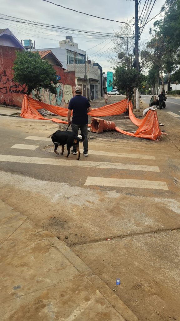 Atenção motoristas e pedestres obra mal sinalizada na Pinheiro Guimarães