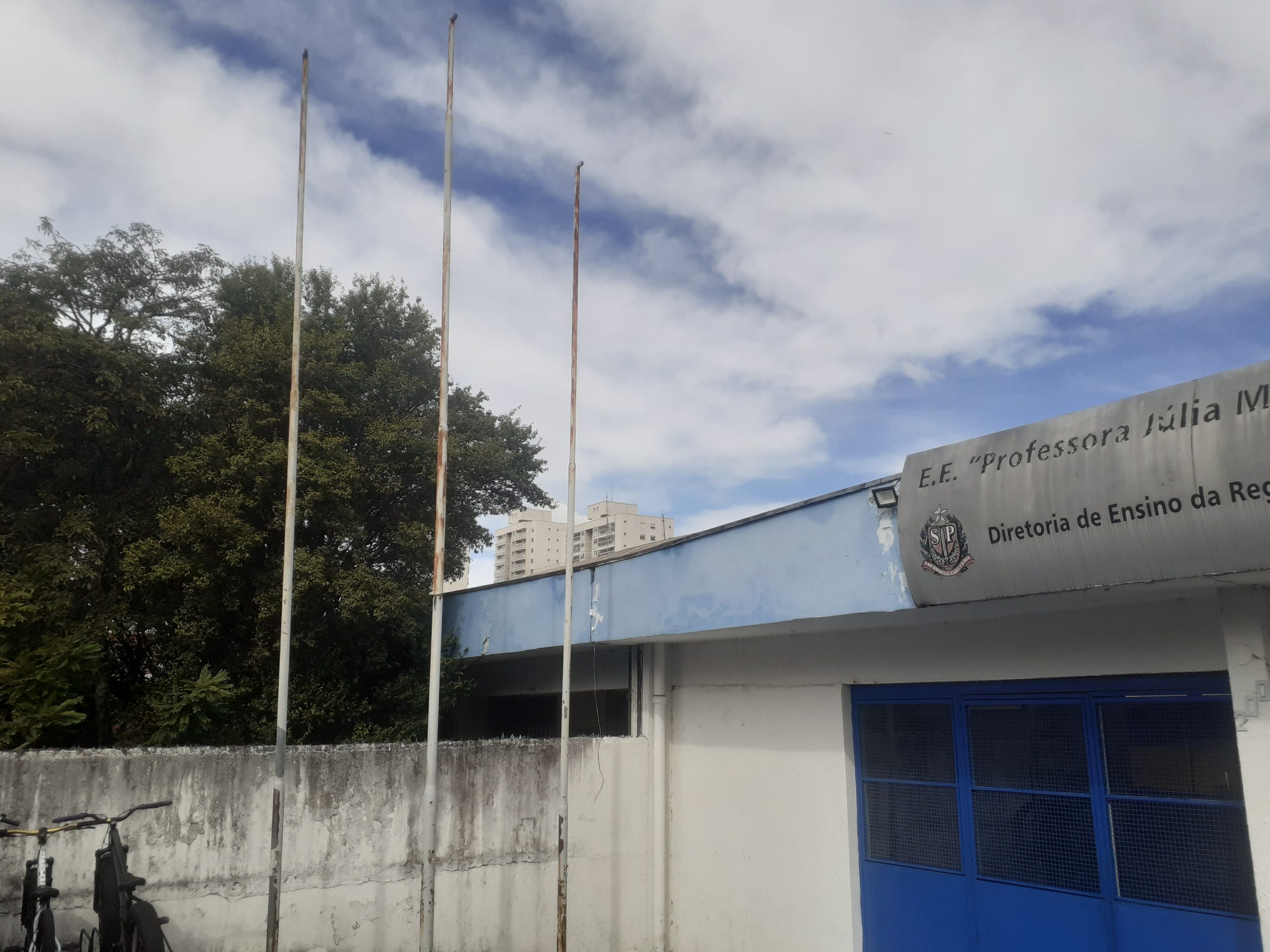 Cadê as bandeiras dos mastros da Escola Júlia Macedo Pantoja?